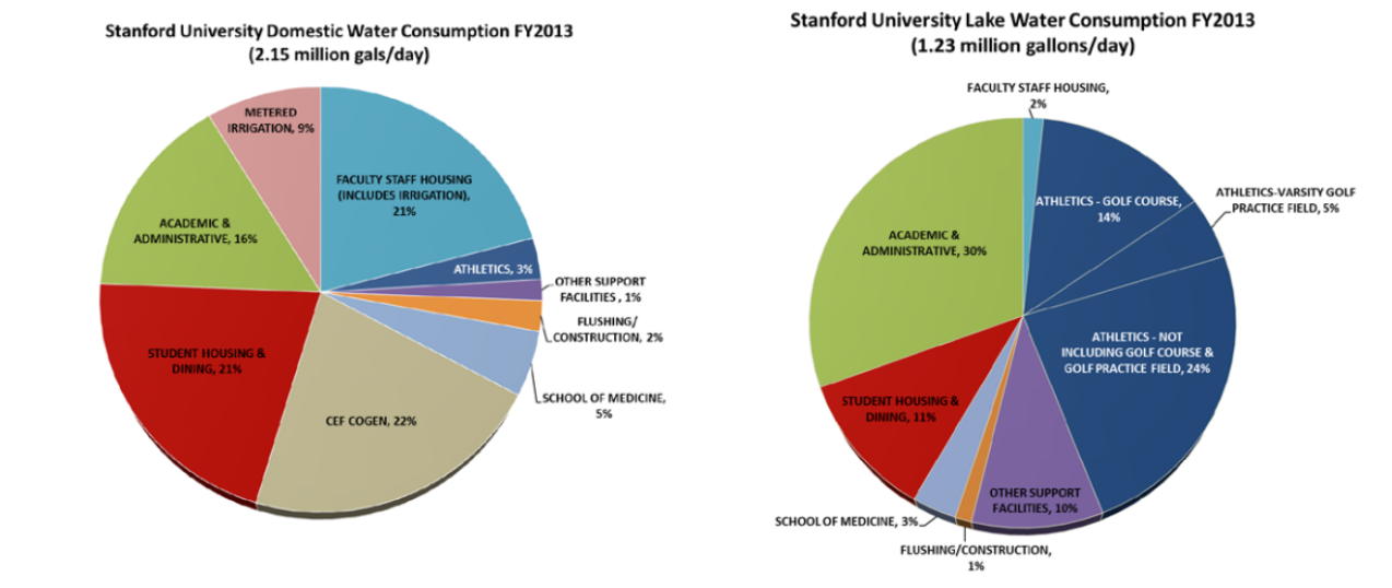 If the University is using non-potable water on these features, the runoff is not technically illegal. However, evidence indicates that much of the water Stanford uses on its lawns is in fact potable. Last year irrigation constituted 9% of Stanford’s domestic water consumption, while Faculty Staff Housing, which includes irrigation, was responsible for another 21% of water use. Stanford uses non-potable water on athletic fields, but not on other green areas. Indeed, Etchemendy’s letter mentions the “summer irrigation season” as being “when much of our potable water is consumed.” In other words, watering of green areas is responsible for using up a lot of valuable, drinkable water. Etchemendy then goes on to say that “to comply with… regulations we must limit irrigation using the campus domestic water system to two days per week.” The grassy areas outside the Faisan Courtyard, as well as Levin Field, are watered just twice a week — the limit for irrigation using potable water. It is highly unlikely this is a mere coincidence. Rather, it is clear that Stanford is watering its substantial non-athletic green areas with potable water.