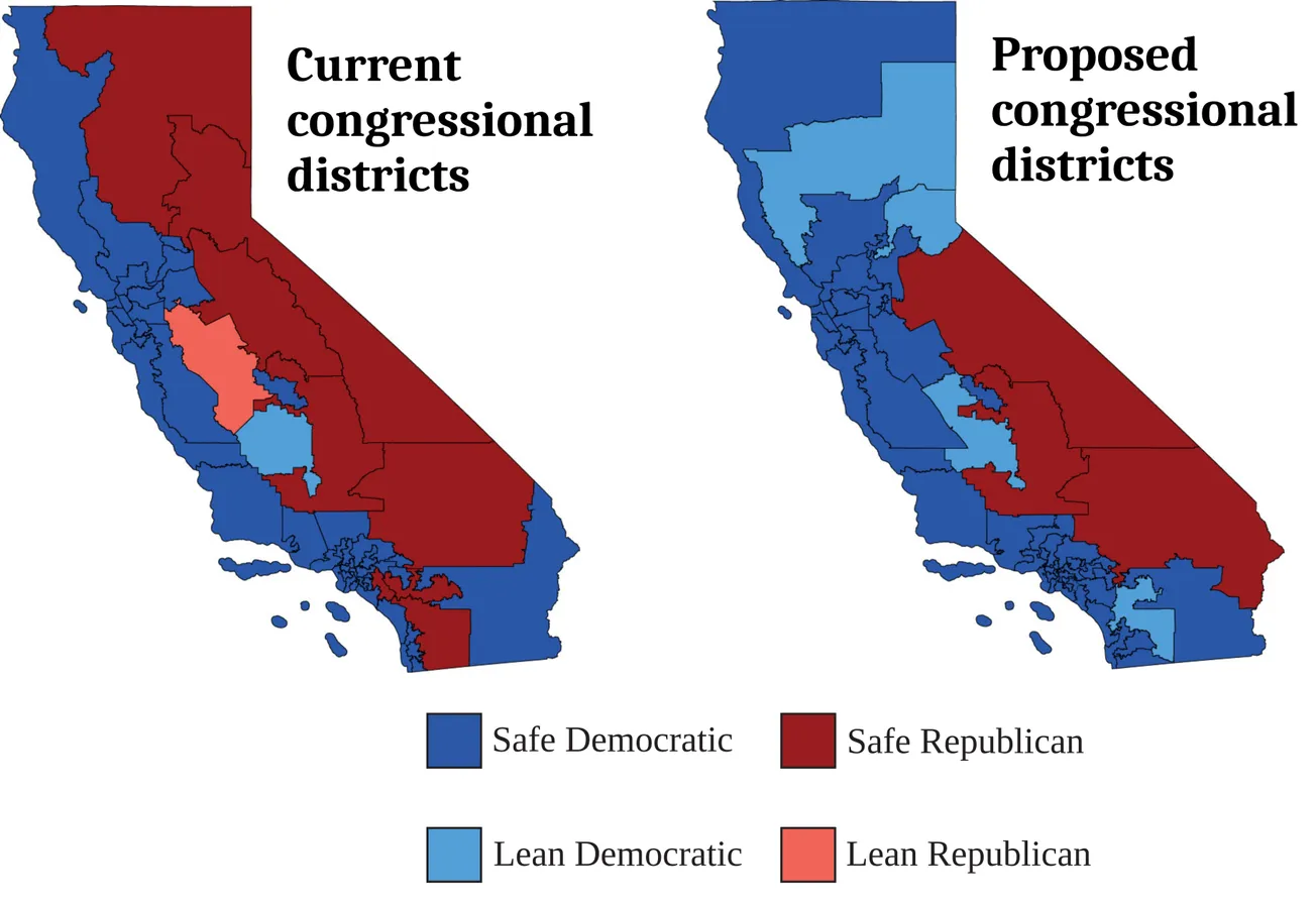 The passage of Prop 50 has supercharged the already existing imbalance by throwing out the CCRC’s carefully drawn maps and replacing them with blatantly partisan ones. The ballot measure, championed by Governor Newsom, will very likely succeed in delivering five more seats to Democrats by a mix of packing and cracking, bringing them a total of 48 of 52 or a whopping 92% of the House delegation. In Prop 50 itself, titled the “Election Rigging Response Act,” Democrats claim the measure is necessary to combat a 2025 Texas redistricting law intended to advantage Republicans. But even if the new Texas districts are all successfully flipped red, the Texas delegation will only be 79% Republican in a state where Democratic presidential and gubernatorial candidates typically receive 40-44% of the vote.