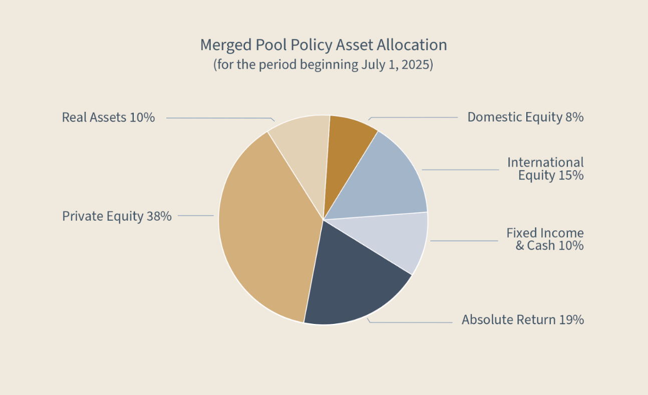 RW: The most important thing in managing an endowment portfolio through a variety of market environments is discipline. As an institutional investor, you create a policy asset allocation framework for your portfolio, which outlines how we want to design our portfolio in terms of risk, return, and liquidity to support the academic mission over the next 10 years.