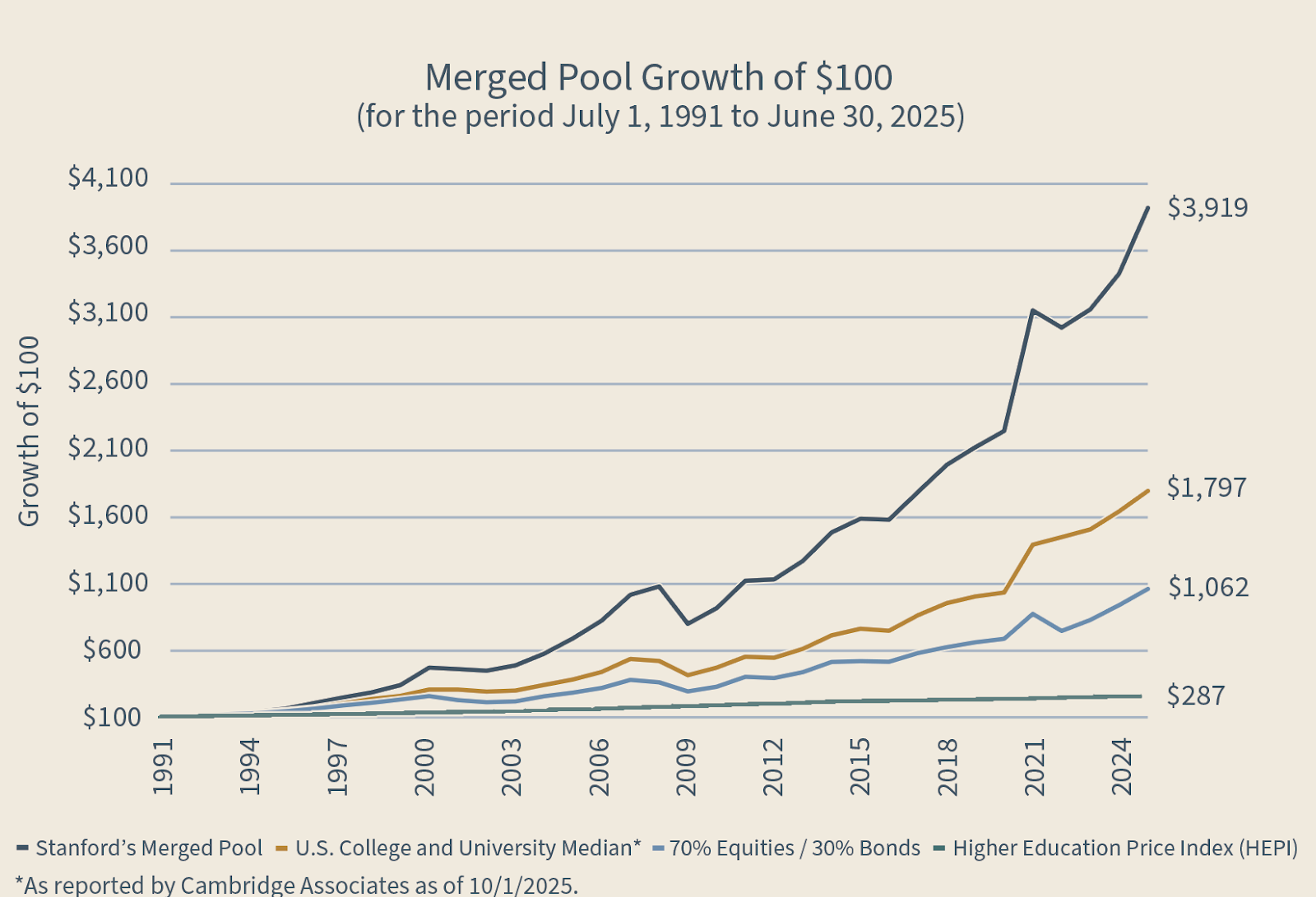 One thing that is different for Stanford is that now we’re much bigger. We’re approaching $50 billion in Stanford’s Merged Pool, and managing that is a lot harder than when we were at $25 billion, when I joined Stanford 10 years ago. When David wrote his seminal book on endowment management, for example, Yale was at $5 billion. It’s hard to scale some of these alternative strategies. The execution challenge gets much harder at $50 billion than it was at $10 billion.